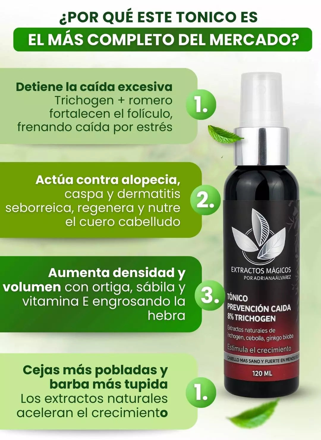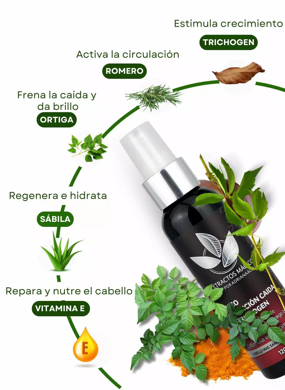 ✅ Defensa contra la caída – Romero, ortiga y quina actúan directamente sobre la raíz, evitando debilitamiento.